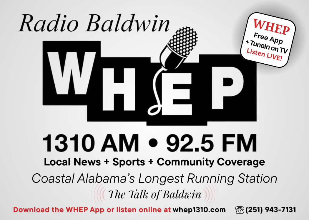 WHEP “Radio Baldwin” is Coastal Alabama’s longest-running station, providing award-winning local news, community coverage, local shows, along with highly-popular national and regional programs.